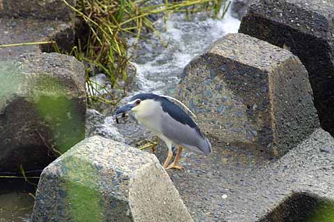 時間つぶしに堰の下の方へ行ってみるとゴイサギがじっとしてました。