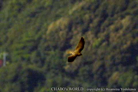 しかし、せっかく来たんだからと、とりあえず山頂に登ってみることにしました。山頂はこれまた凄い風です。國友さんのフィースコが三脚ごと倒れる程です。二人で山頂をウロウロしながら時間つぶしに佐世保の市街地や港を撮影したりしながらアカハラダカを探します。と、山頂の南側、下の方を鳩くらいの黒い鳥が通過します。二人で何だろう?と話してるとまた現れました。今度はおなかもちゃんと見えてやっとそれがアカハラダカだと解りました。(爆)