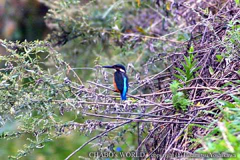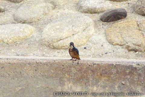 田村大橋下の所にカイツブリ若が居ましたが潜ってばかりで写真を撮らせてくれません。(~~; 橋の下を潜って堰横の芝生公園へ行くと横の小川にカワセミ♂がいます。こちらは成長かな。このあと堰の方へ飛びましたが見つけることは出来ませんでした。