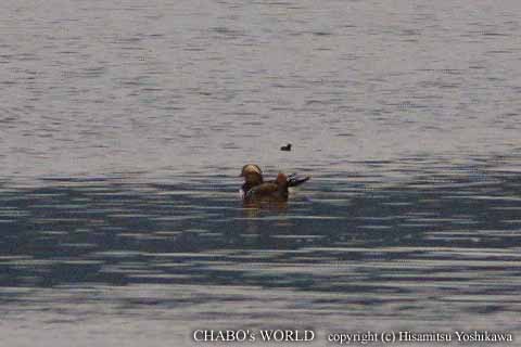 コーナーへ向かい遠くに散らばった鳥さん達を見てたらオシドリが浮かんでました。(^^;