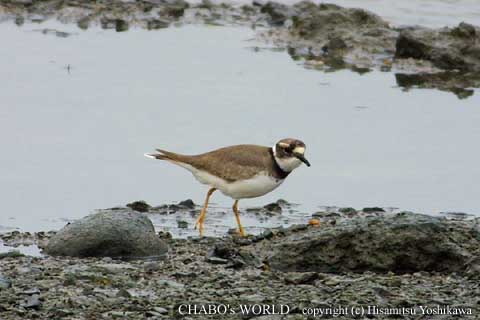水門のはアオアシシギとイソシギがいますが遠いです。瑞梅寺川側に回り込むとチドリ類が見えました。ハジコチ?と思って近づくとイカルチドリでした。残念。