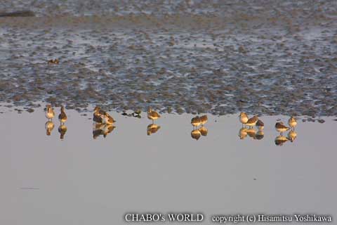 干潟は潮が引き初めた頃でどんどん干潟が浮上してる状態です。干潮から満潮になるときは鳥さんが集まってくるのに引き初めは分散していく感じです。