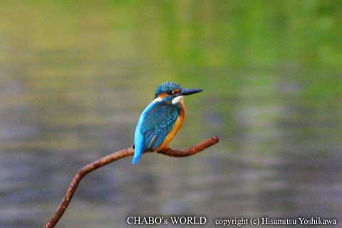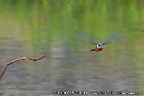 σ(^^;の手前で曲がって下流へ。少し下った所に止まりました。ふぅ、吃驚したぁ。その後再び上流へ飛んで行きます。帰還しようと車にもどり矢倉橋を渡ろうとした時、川をみるとカワセミくんが居ました。やっぱ橋より上流へは行かないみたい。(^^;