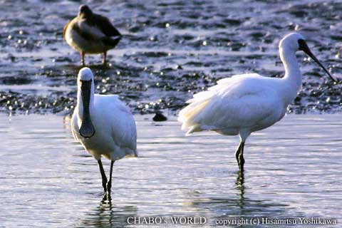 | 今日の観察種 カワウ、カイツブリ、バン、マガモ、コガモ、カルガモ、オナガガモ、キンクロハジロ、ダイサギ、コサギ、クロツラヘラサギ、タゲリ、イソシギ、ハマシギ、アオアシシギ、ダイシャクシギ、トビ、モズ、ホオジロ、スズメ、カササギ、ハシボソガラス |