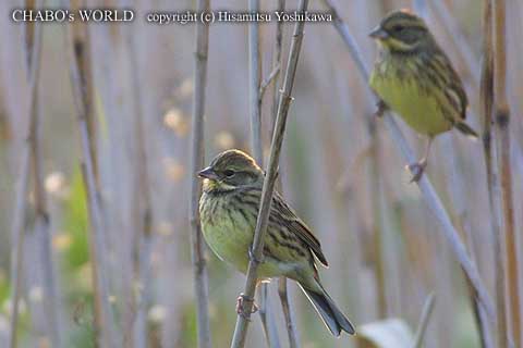 太郎丸へ移動しウロウロしますがミヤマガラスの群すらありません。工場裏の方へ向かいそのまま養護学校前の葦原を見てると少し日が射してきました。スズメが多いですがホオジロとアオジも居ました。アオジは目の前に来てくれて今秋初撮影に成功です。(^^;