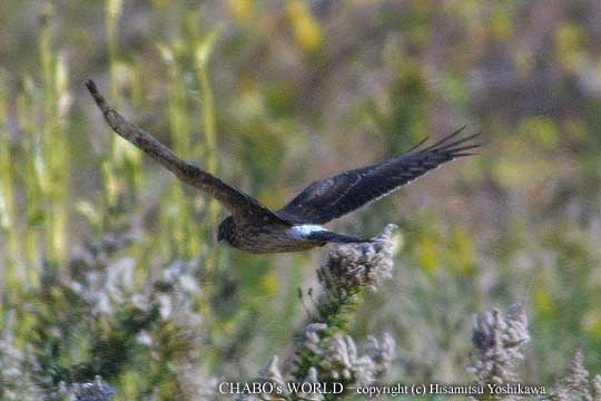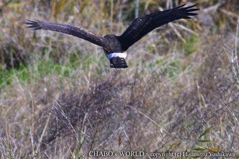 低空をふたつ池の方へ向かいます。こっち向いてくれれば良いのですが残念ながら顔は見ることが出来ませんでした。そのままふたつ池の葦原の中へ消えました。