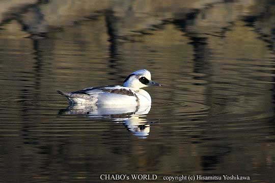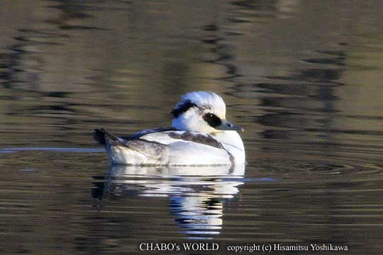 やっと撮影させてくれました。(^^) ミコアイサ♂初認です。