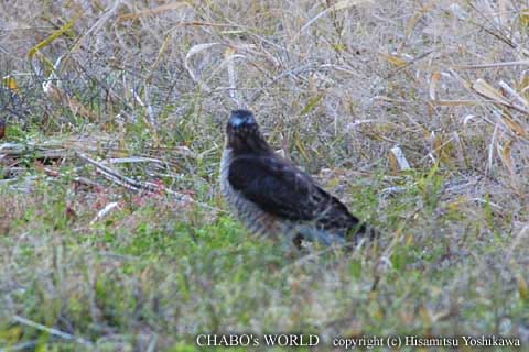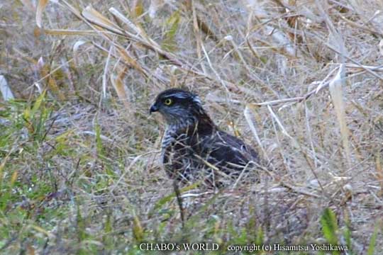 このハイタカ、上面が茶褐色だから雌ですかね。眉班も太いし。(^^;