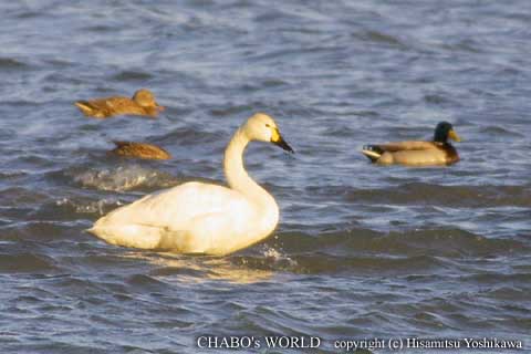 干潟は満潮でしたがコーナー前の洲にカワウ、ユリカモメ、マガモと久しぶりのコハクチョウさんも居ました。