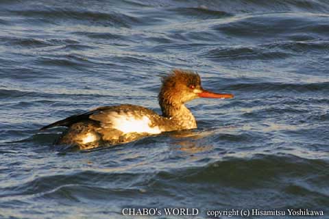 手前の方に見え隠れしてる鳥さんが居るので暫くみてるとウミアイサ♀でした。