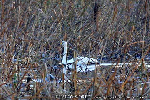 西の池に行くとコハクチョウが枯れ葦の方に居るのが見えます。干潮だから池に入ってきたんですね。あとはマガモ、カルガモ、オオバン、バンなどですがオオバンは20くらいいそうです。増えましたねぇ。 |