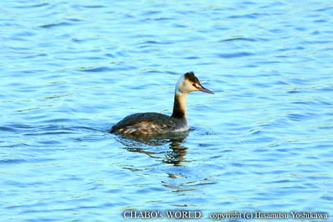 廻りにはバンがお供してます。あとはカワウ、オオバンがウロウロしてました。コーナーに着くと、砂の洲がかなり浮上した状態でズグロカモメ、セグロカモメ、ウミネコ、カワウが休んでます。堤防側をカンムリカイツブリがゆっくり下って行きます。 |