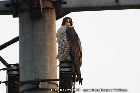 ハヤブサを撮ってると横の田圃を低くチョウゲンボウ♀が飛んでいきます。追いかけますが撮影させて貰えません。(^^; |