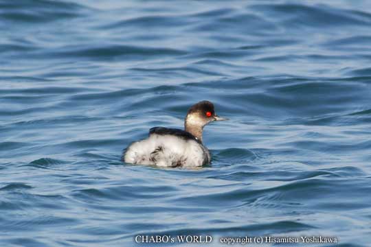 ![]() 赤い目のハジロカイツブリ。瞳孔はちっちゃいので縮小画像では見えませんね。(^^; |