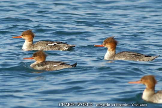 ![]() なぜか♂が一羽も居なかったウミアイサの小群。 |