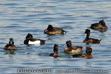 この群は雄を中心に浮かんでました。対岸には雄だけの小群もしましたが遠いです。 |