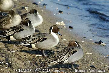 大群で休んでたオナガガモ、時々水に入り水浴びをしたり羽繕いしたりしてました。今津では遠いのであまり写真は撮れないのですがここならいつでも撮れそうです。 |