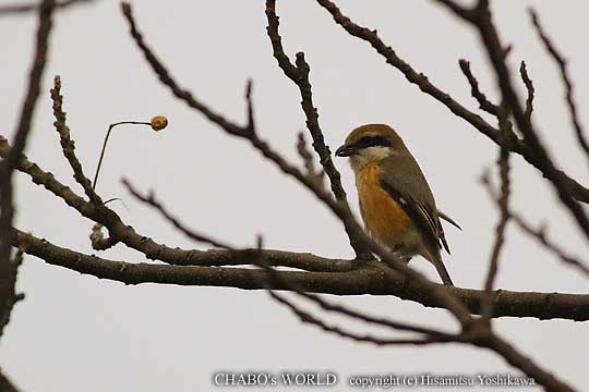 | 橋の方へ向かうと高木にモズ♂がいました。 |