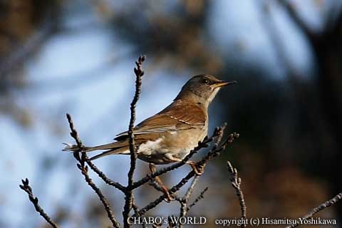 ![]() シロハラは木の上。 |