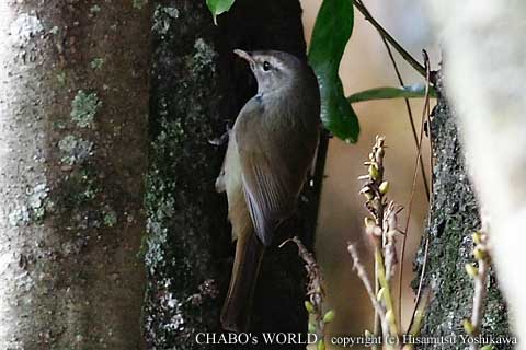 ![]() 木の根本の茂みから出てきたウグイス |