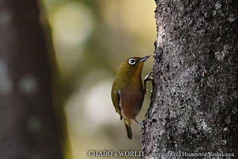 ![]() 同じ木の上の方にはメジロが餌を突いてます。 |