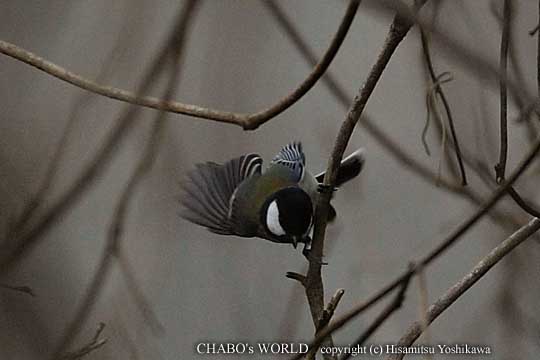 | ん〜、今日も今一キリッとしないカットです。と思ったらシャッター速度1/15だった(笑)。 背景が暗い上にジョウくんも暗めな色彩ですもんねぇ。(汗) 大きい砂防へ行ってみます。ジョウビタキ♀は今日も居ました。けど写真撮らせてくれません。(ToT) 暫く沢の近くで待ちます。と、林道を何か横切りました。コジュケイ?? 幅60cmほどの小道ですから横切るのも一瞬でしてよく見えません。もう少し粘ってるとまた1羽が小道に出てきました。やはりコジュケイです。目があってしまいすぐに隠れちゃいました。その後は出てきません。諦めて他を探してるとシジュウカラが3羽鳴き交わしながら砂防へ入ってきます。 |