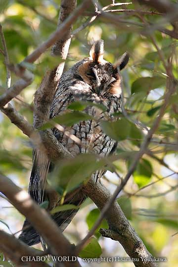 | 今日も先週に続いて佐賀遠征です。お目当てはトラフズクさんです。 自宅を7時前に出ましてPCナビにトラフズクさんの居る某公園まで連れてって貰いましょう。佐賀へ抜ける三瀬トンネル前でノスリが道ばたに居ました。急遽撮影態勢に入りますがすぐに飛ばれます。(ーー;) 帰りにリベンジしちゃる! 公園に到着し、早速トラフ探しです。大体の場所は聞いていたので付近を散策。 ツグミ、シロハラ、ムクドリがウジャウジャ居て鳴き声が騒がしいです。 で、小1時間探しますが見つかりません。ん〜、最後の手段です。國友さんは既に見てるのでTELで確認です。そういえばオジロビタキの時もTELしたような・・・。 TELで聞いて場所の特定は出来ました。全然違う所を探してた。r(^^;; その場所に行くと地元の方が来られて林をのぞき込んで居られます。 その目線の先をみると・・・おお! トラフズクちゃんです。あまり好きじゃない柄だと思ってたんですが実際に本物を見るととても可愛い鳥さんでした。もっと大きいと思ってたんですがアオバズクより小柄です。生憎、目をつぶったままでしたが撮影開始。 |