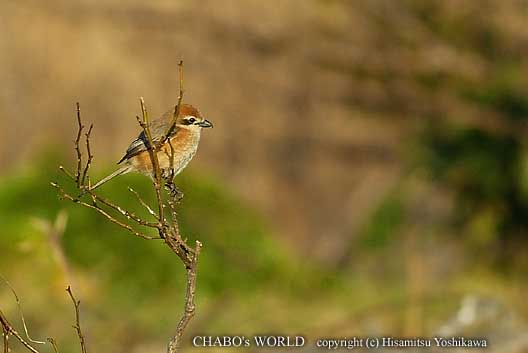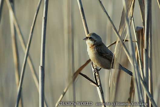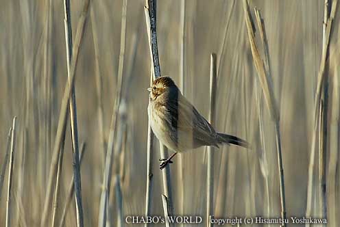 | 上と同じ個体ですがお澄ましポーズで凛々しさをアピール? 数分間でしたがオオジュリンらと一緒に楽しませてくれました。そのうち葦原の奥へと移動して見えなくなります。 念願のツリスガラを見れて意気揚々と車に戻ってるとモズ♂が良いところに止まってました。 |