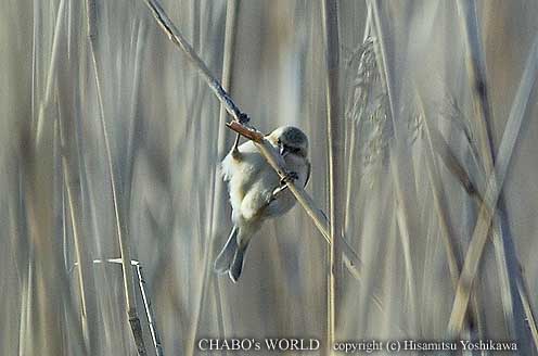 | オオジュリンの群の中に小さめの小鳥さん発見!ツリスガラです。やっと初認です。 狸みたいな顔で可愛い鳥さんです。 |