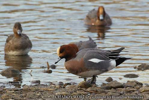 | 小田部大橋上の堰の所ではユリカモメ達とヒドリガモ達が居ます。 |