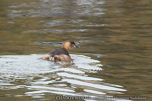 | ここでUターンして再び橋本橋へ戻ります。遊歩道を歩いているとカイツブリが警戒して遠ざかります。 |