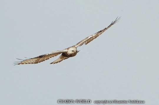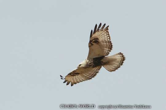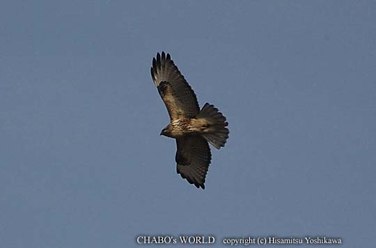 | 今日は阿蘇にケアシノスリのリベンジです。前回、darumaさん達と行って雲の中だったので今日こそはGETしたいです。 家を7時前に出て、途中家族を送って、阿蘇に向かいます。天気は上々でしたが霧が発生していて高速道路も50km/h制限でした。なんかやな予感・・・。 ですが、高速を降りて阿蘇方面へ向かうと段々霧も晴れてきます。で、目的地は絶好の鳥見日和。風もなく穏やかに晴れてました。(^^) 前回場所は教えて貰ってるのでまっすぐその場所へ行くと既に福岡からSさん他3名の方が来られてました。ご挨拶して「ケアシ居ますか?」とお聞きすると遙か先の木に止まってます。やっと念願のケアシノスリに会えました。(T^T) しか〜し、遠い〜。しかたないので飛んでくれるのを待つことにします。 すると、普通のノスリがやってきました。 |