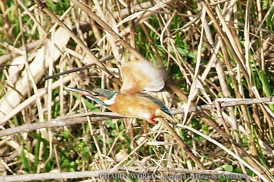 | ダイビングを期待して待ちますがなかなか動いてくれません。撮影してると背後に人の気配がしたので振り返ると三人のおばさんが後ろで観察中。と、目を離した隙にカワセミさんは魚をGETしてました。(ーー;) ちょっとガッカリしたのもつかの間、あっ! |