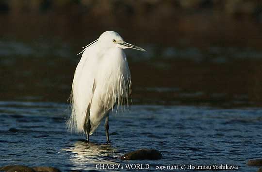 | 肉眼で探してもなかなか見つかりにくいです。 ヒドリガモ達を横目に見ながらコサギが餌を探してる模様。 |