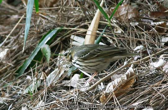 この後もしばらく待ってるとジョウビタキやらヒヨドリ達、エナガ達、メジロ達と次々と桜の木にやってきます。そしてみんな北の方へ降りていきます。 そろそろこちらも移動しましょう。山頂から東側入り口の方へ下山します。林道を見ると10m程前をビンズイも下山中でした。(^^; 脅かさないように着いて行きます。東側入り口に戻ってくるとビンズイ達もちょうど林を抜ける所でした。 |