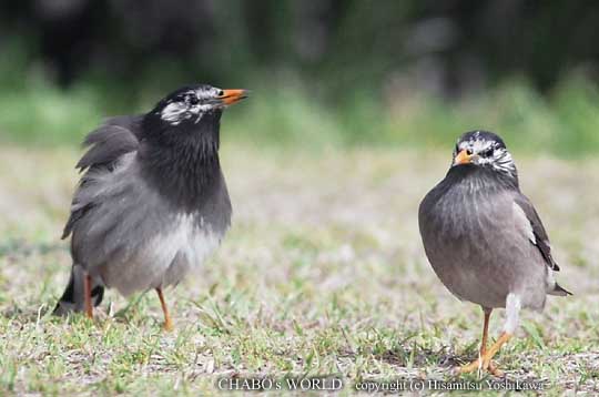 | セグロカモメは水に入っててよく見分けが付かないのですが、足が黄色いのが確認出来たのはこの個体くらいでした。逆光気味なのであれですが肉眼ではもっと黄色が目立ってました。というわけで 次回リベンジします。 カモメさんはじっとしててつまんないので小田部大橋上流へ行ってみます。桜も5分咲きくらいで花見の人が多く、鳥さんは少な目です。 ムクドリの番が芝生の上で告白タイムしてました。(笑) |