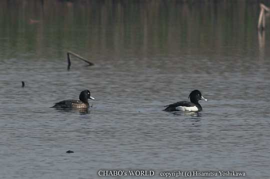 ふたつ池は東の池には釣り人さん、オオバン、カイツブリ。西の池にはマガモ、ダイサギとキンクロハジロ番がまだ居ました。 |