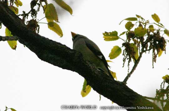 高木の上の方から変わった鳴き声が聞こえたので見上げるとイカルが居ました。 |