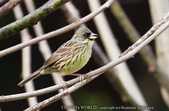 | すぐ横でゴルフの練習をしてる人がいるのに知らん顔です。が、レンズで狙うとそそくさと離れていきます。r(^^;; 山の北側からはホオジロとアオジの声。ミヤマホオジロはもう抜けたのかな?? しばらくじっと待ってるとアオジが藪から出てきました。 |