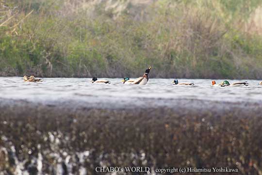 | 2倍テレコン付けてるのでMFなんですがピントが来る確率は半分以下でした。最近AFに頼りすぎてるのかな?(汗) 堰の方をみるとマガモとヒドリガモが屯してます。 |