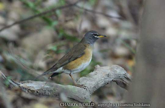 | 天気は良いけど木陰に入ると暗くて写真は撮れそうもない状況ですね。それでも山を登ったり降りたりして鳥さんを捜します。諦め掛けてた頃、今津でお会いしたことのあるバーダー氏が来られ少し話をします。やはり今朝は鳥は少ないそうです。植物園の廻りにヒタキ類が多いらしいとの事でそちらに行ってみる事にしました。 柵沿いに園の外周を廻ってるとマミチャジナイが居ました。初認です。(^^) |