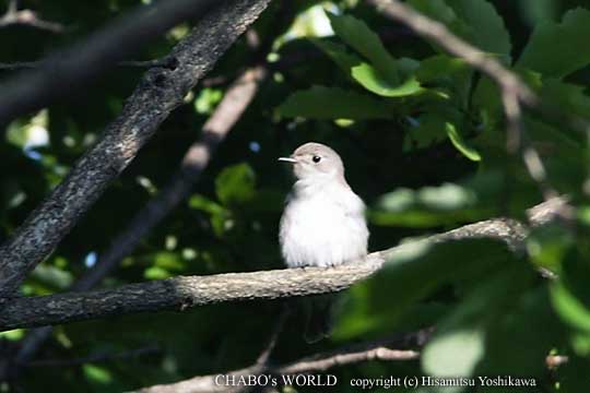 | 今朝は昨日の雨も上がり、よく晴れてます。南公園に鳥さんが入ってるのに期待して行くことにします。 階段下から横の道を階段の上まで歩きますがシジュウカラくらい。小鳥の声を聞いてもシジュウカラとヒヨドリ。う〜む、夏鳥さんは居ないみたい・・・。階段付近をウロウロしてるとエゾムシクイの声が聞こえましたが深い森の中。一度階段下に戻るとマミチャジナイが暗い木陰に1羽いました。そのとき、タクシーで来られたご婦人に話しかけられます。「今朝は居ませんねぇ・・・。」などと話してると「一緒させて貰って良いですか?」とご婦人。成り行きから一緒に廻ることにしました。植物園側は居ないので道路を渡って北側の山を廻ります。展望台に行くとコサメビタキが羽繕いしてました。 |