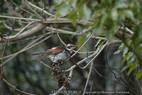 | 7時半に起きてヤバイと思い、慌てて外を見ると結構良い天気です。 どうしようか迷ったのですが30分でも鳥見が出来ればと、出撃します。目的地は車で5分足らずの生松台中央公園です。ふれあいの森はもっと近いのですが日が射すにはもう少し経たないといけません。 いつもルリビを見てたポイントでしゃがんで待ってるとツグミがやってきました。 |
