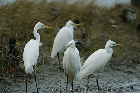 | 今朝はこの冬一番の寒波がやってきたって感じで非常に寒いです。外は雪が舞い、道路にも薄く積もってます。自宅の前がきつい坂道なのでこうなるとお手上げです。 雪がレフ板の変わりになって明るいんですけどね。雪の中の鳥さん撮れそうだけどなぁ・・・。残念。 昨日の寒そうなダイサギさん達。 |