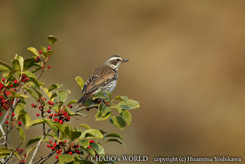 | コゲラを撮って、今日はお終いにしようと車に戻ると最初にみたピラカンサに日が当たりヒヨドリ、ツグミが群れてます。ちょっと撮影してから帰還しましょう。 |