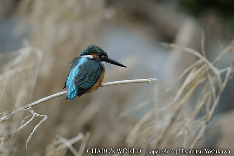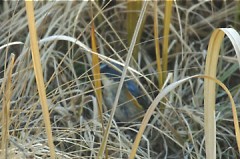 AFした後、ピントの微調整したいけど重さを支えるのが精一杯でピントリングを回す事ができません。もう少し前側にリングがあると良いんですけどねぇ。ISが羨ましいですねぇ。r(^^;; ![]() 鉄の橋の上流の所まで来ると対岸にルリビ♂が居ました。土手の草むらの中でゴソゴソやってます。出てこないかなぁ〜と待ちますがいきなり葦原に消えました。 ←証拠写真です。(~~; 後ろを見るとホオジロが囀ってます。 |