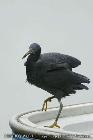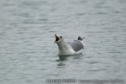 | 漁船の縁に止まって動きません。(^^; カモメもあまり撮ってないので撮影します。 |