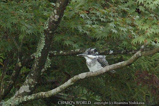 | 今朝も曲淵です。いつものように堰堤側からダム湖を見ると釣り人さんがぞろぞろ。(~~; 堰堤側に車を置く事ができないくらいです。仕方ないので先の方までいって歩きながらダム湖を観察します。おっと、カワセミが対岸へ飛ぶ姿があります。その後も鳴き声がする方を見るとカワセミが飛んでますねぇ。 ヤマセミを探しますが対岸にも釣り人さんが入ってるので姿は見えません。堰堤側までいくとちょうど釣り人さん達が撤収準備してます。それじゃ車を移動させましょう。 管理事務所傍に止めてヤマセミを待ちます。おっと来ました。西側からまっすぐ堰堤へ。暫くしたら吐水口の梯子に止まります。堰堤に出たいけど事務所のゲートが閉まってます。 双眼鏡で観察してると初めてお会いするバーダーさんが来られ、その後でコナン.Kさん、國友さんとやって来られます。みんなヤマセミ狙いなんですが、なんせ釣り人が。。。(ーー;) 管理事務所のゲートが開いたので早速堰堤へ。さっきの1羽がまだ木にとまってました。 |