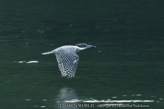 | 今朝は明け方に強い雨が降っていたそうですが、7時に起きると外は日差しがあります。 寝坊したので諦めようと思ったんですが日が射してるので出撃します。 室見川に向かうと増水し、濁流になってます。これじゃ鳥さんは居ませんねぇ。って事で曲淵に変更です。r(^^; ダムへ着くとブイのゲートに1羽のヤマセミが居ます。急いで撮影準備をしますがレンズを向ける前に飛ばれてしまい、飛翔のみになりました。 |