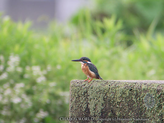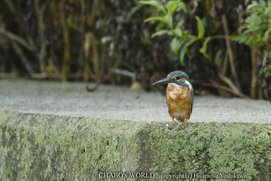 | さすがに近いと綺麗に写りますねぇ。ズームしてもこれくらい写れば良いのですが途端に画質が悪くなります。AF精度がかなり悪くなるのと手ぶれが発生するのが画質劣化の原因みたいです。 干潟を見るとダイシャク2羽、他はサギ類とマガモ、カルガモです。 センター用地内は雑草が育ち過ぎて何も見えません。(~~; ヒバリ、オオヨシキリ、セッカが偶に草の先っぽに止まるくらいです。ツバメに混じってカワラヒワも小群で飛び回ってます。 周船寺川水門に行くと、護岸の上にカワセミ♀が居ます。結構ボロボロですが子育てが終わったのかな? まずは最短距離よりロクヨンに1.4倍テレコンつけて撮影します。20mくらいですかねぇ? |